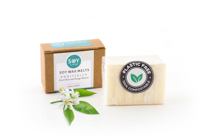 Soy Wax Melts are the perfect for a ceramic burner. Made with pure soy wax. This wonderfully uplifting scent, Positivity, is a blend of Desert Rose and Orange Blossom. These delightful home-fragrance products release up to 10 hours of aromatherapy fragrance per block. Each box is constructed from recycled paper and contains 6 x 20ml fragrance melts.